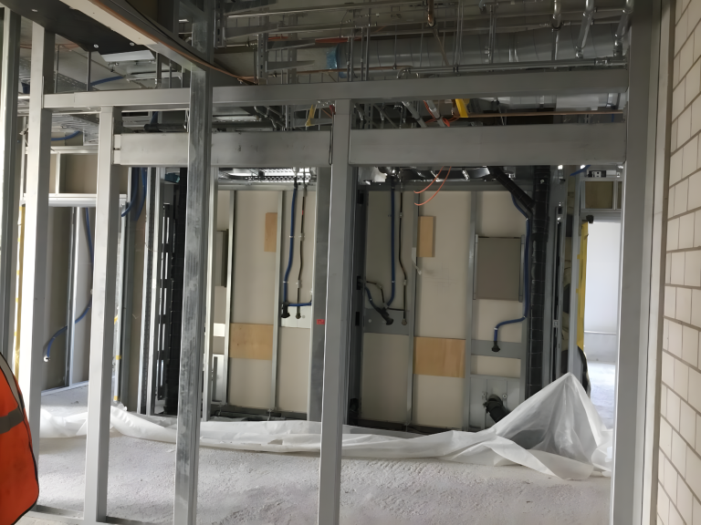 Professionelle Trockenbau- und Rigipsarbeiten am Kantonsspital Aarau (KSA). Ausgeführt in Zusammenarbeit mit Partnern von Implenia, nach Schweizer Qualitätsstandards